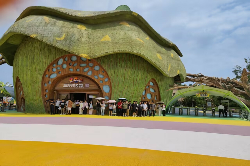 为深化《建筑渲染设计(室内+室外)》课程教学改革,创新“理论+实践”一体化教学模式,近日,艺术设计学院动画教研室教师邢龙带领《建筑渲染设计(室内+室外)》课程组师生,组织动画2301班42名学生赴芜湖弋江区松鼠小镇及周边,围绕“商业空间设计全流程实践”主题开展沉浸式场景化教学实践活动。此次考察以“空间感知与场景重构”为核心,精心规划涵盖专卖店动线设计、主题酒店空间叙事、餐饮空间品牌表达等几大调研模块,通过实地考查、案例分析与设计推演,让学生在真实商业场景中感知学习,有效提升建筑渲染设计能力。一、多维场景深度体验,构建立体教学空间考察团队深入松鼠小镇三大核心功能区,系统解析建筑形态与空间布局的内在逻辑。在三只松鼠专卖店,学生重点观察入口处放大设计的碧根果、榛子、夏威夷果造型建筑,分析其如何通过造型设计、装饰布置、材质灯光等呈现IP主题视觉效果。邢龙老师现场讲解“前店后院”的单体建筑布局原则,强调虚实空间组合对商业氛围营造的重要性。(图为松鼠小镇主入口及三只松鼠零食专卖店)   在林间酒店,