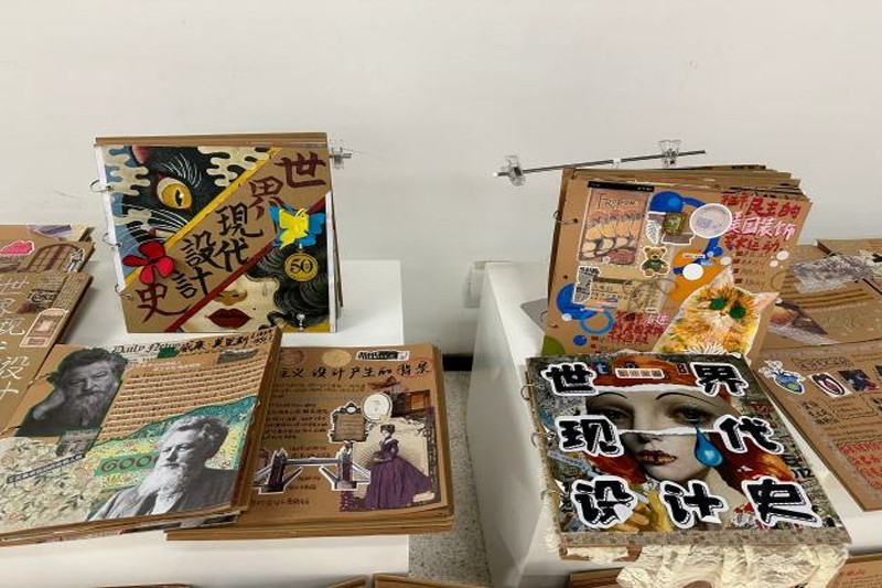 6月20日,安徽信息工程学院艺术设计学院在艺术楼一楼展厅举办了一场别开生面的作品集展览,展出的是环境设计专业大三学生在《世界现代设计史》课程中的知识手帐作品。此次展览不仅是对学生学习成果的一次集中展示,更是学院教学改革成效的生动体现。《世界现代设计史》作为环境设计专业的选修理论课程,将该课程列为教改项目,旨在帮助学生系统掌握现代设计发展脉络,为后续专业学习筑牢理论根基。            在本次教学中,授课教师黄秋妍、汪姣姣大胆创新,采用知识手帐这一新颖形式助力学生学习。知识手帐要求学生自主梳理知识点,以手绘、拼贴、文字注解等多元方式呈现。这一过程促使学生从被动接受转为主动探索,深度理解现代设计流派、代表人物及经典作品。(图为展出作品) 参与此次课程的环设2201班与环设2202班学生积极响应,精心创作了一本本独具匠心的知识手帐。手帐内容丰富,从工艺美术运动的自然主义图案,到现代主义设计的功能至上理念,再到后现代主义的多元融合风格,均有细致入微的呈现。不少学生还结合当下设计潮流,对传