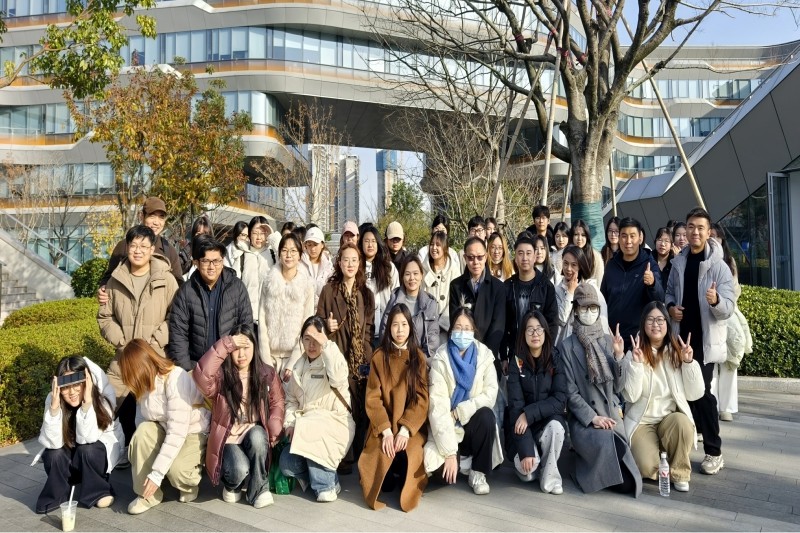 12月15日,“2025讯飞设计周暨AI+设计产教融合创新发展论坛”在合肥科大讯飞小镇启幕。本次活动由科大讯飞股份有限公司主办、科大讯飞设计管理委员会、中国工业设计协会人工智能分会、安徽信息工程学院艺术设计学院联合承办。艺术设计学院副院长周建、骆琼率队,数字媒体教研室负责人张超、产品设计专业教师薛遥及部分骨干教师,带领产品专业42名学生奔赴产业一线,把《交互原型设计》课堂搬进企业现场,完成课程必修模块,也拉开学院“讯飞设计周”校企共建系列活动的序幕。(图为师生在讯飞小镇合影) 师生一行在AI体验馆迎来特邀嘉宾——同济大学长聘特聘教授、博士生导师辛向阳教授,随即共同开启展厅研学。在讲解员的引导下,大家依次参观了“语音识别”“多模态交互”“AI虚拟主播”“智能座舱”四大展区。同学们以“用户旅程”的视角,细致记录技术亮点与交互细节。在互动体验环节,张超老师与产品专业学生共同参与讯飞机器人五子棋对弈,最终击败机器人,赢得现场阵阵喝彩。周建表示:“让学生在技术诞生的第一现场做出设计判断,比任何模拟