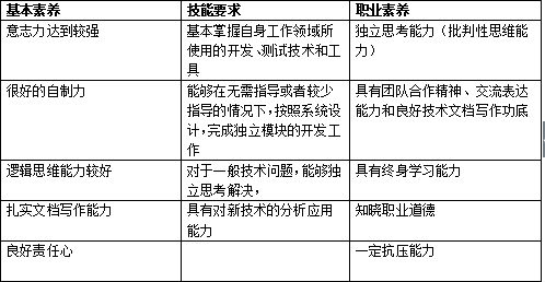 根据前期调研目标,结合当下企业对人才要求及生源实际情况,提炼出计算机与软件工程学院培养目标,即培养IT产业发展所需要的高素质应用型人才: