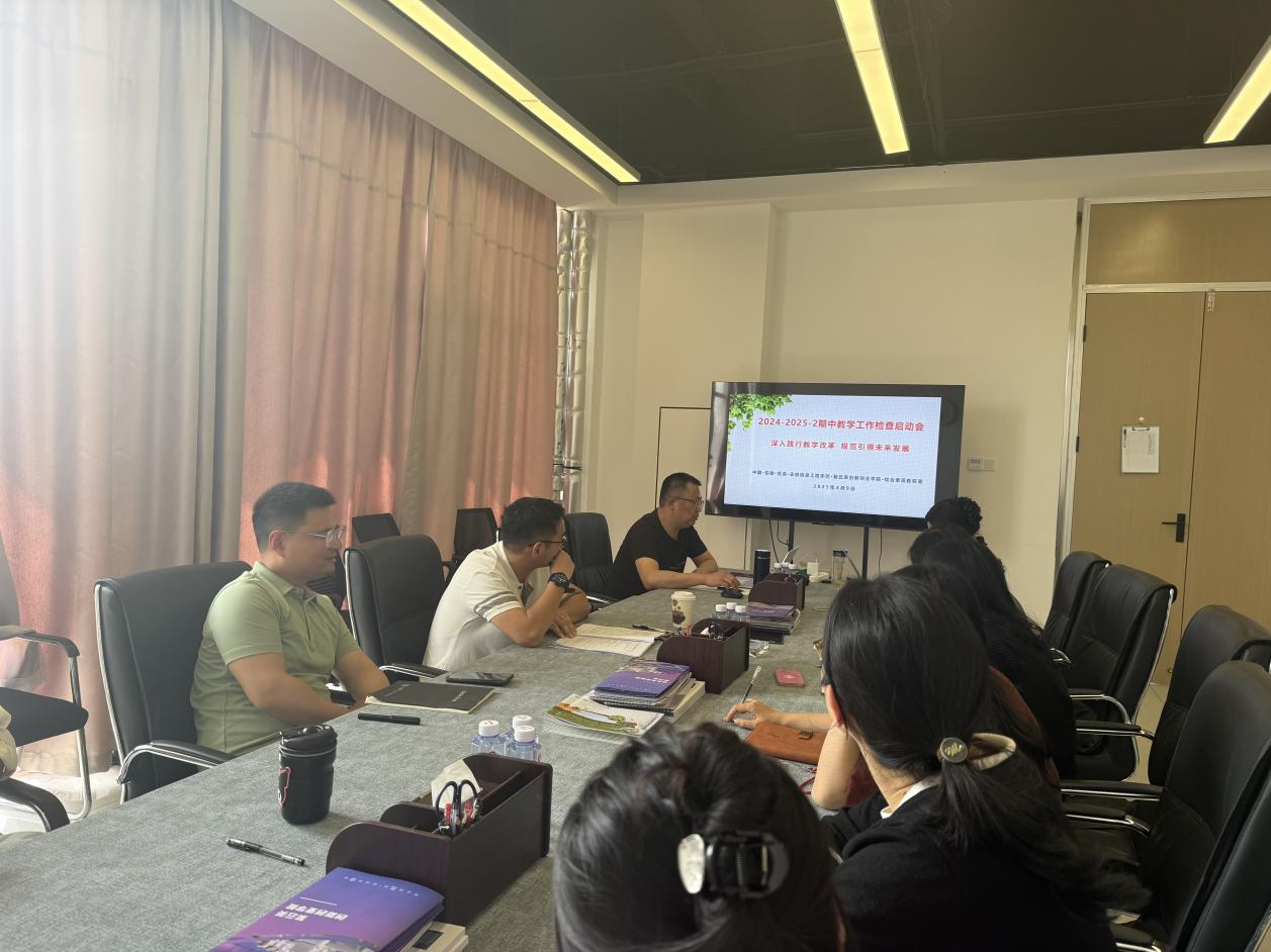为加强教学管理和质量监控,进一步提高教学质量,根据教务处《关于开展2024-2025学年春季学期期中教学检查工作的通知》(教字〔2025〕36号)文件要求,紫云英创新创业学院近日圆满完成了2024-2025学年春季学期期中教学检查工作。学院高度重视,组织开展期中教学检查全体会议,发布工作实施方案,初步建立了个人自查、教师互查、教研室检查、学院检查的四级检查机制,覆盖学院所有的专任教师,针对教学材料准备、教学材料归档、教研室活动规划、课堂教学改革、教风学风建设等多个维度进行了全面而深入的检查。 (图为工作布置会)2025年4月8日至10日期间,学院教研室积极开展期中教学检查的自查、互查工作,发现自身问题的同时,同课题组的教师之间互通有无,借鉴优秀做法,促进教学质量整体提升。11日学院教学管理团队进行随机抽查,进一步差缺补漏,并对查出的问题集中汇总反馈,将教学检查问题整改落到实处,形成检查工作闭环。 (图为检查现场)根据学校整体工作安排,4月14日上午,分管教学副校长、教务处负责人及各业务主