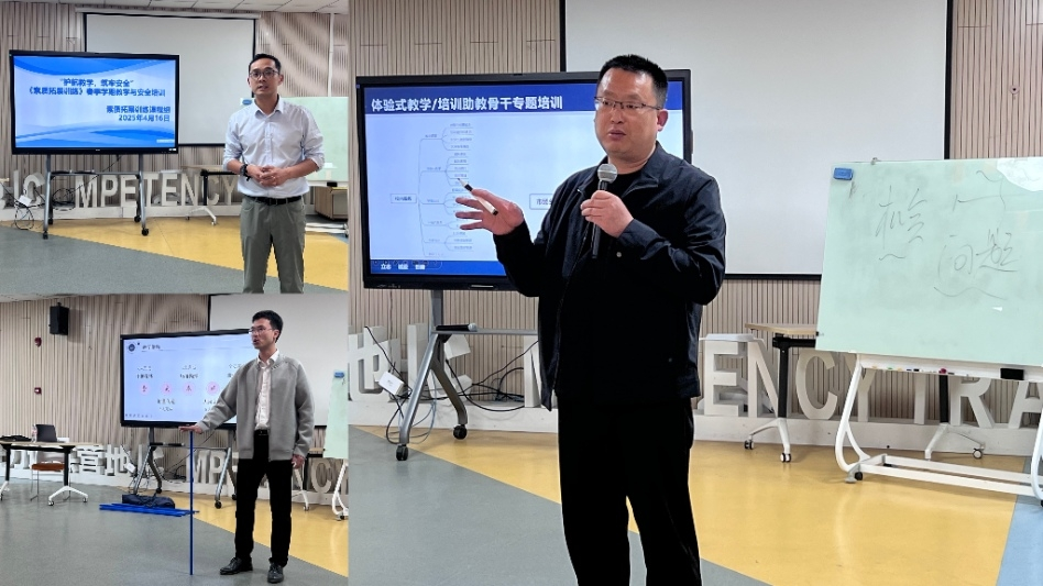 为进一步深入推进我校教学改革工作,提升课程教学效果,增强学生实践能力和综合素质。2025年4月2日下午,综合素质教研室全体教师在紫云英创新创业学院梧桐学创教室召开教学模式大融合教研活动。活动由姚庆阳老师主持,综合素质教研室全体教师参加。 (图为联动专题研讨会现场)首先,姚庆阳老师围绕体验式教学模式的渊源和理论依据展开了分享,重点介绍了素质拓展训练活动的理论背景、教师与学生角色在教学过程中的转换,以及课程对学生认知层次的提升作用,将体验式教学如何实现从知识传授向能力建构的范式转换作了详细说明,为跨课程协同育人奠定理论基础。(图为姚庆阳老师进行理论分享)体验式项目展示环节,李婷婷与周启航二位老师分别带来了“穿越A4纸”和“精神堡垒”两个体验式教学活动展示。“穿越A4纸”展示了如何激发学生的创新意识与合作精神;“精神堡垒”则聚焦学生团队协作和心理韧性的培养。参会教师亲身参与体验后,围绕项目设计、组织形式及教学应用展开交流与讨论。 (图为参会教师参与体验项目)教研室副主任洪杰对三位老师的分享及教