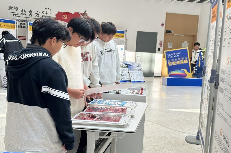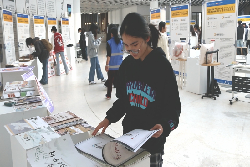 (图为艺术设计学院学生观看作品成果现场)