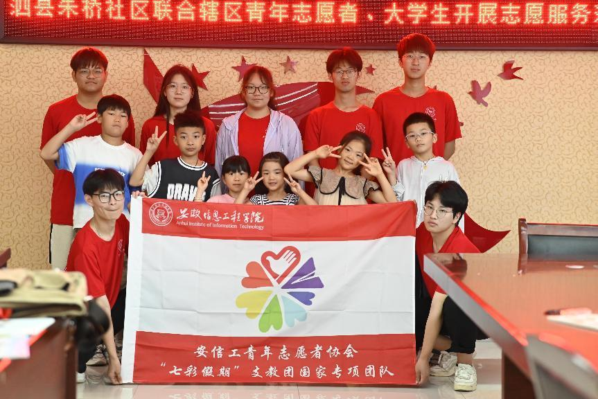 本网讯 为帮助小学生们树立遵守交通规则的意识,2023年7月11日,安徽信息工程学院 “七彩假期”支教团六安分队在校团委王灿、周晓凡老师的带领下,来到六安市裕安区渡槽村村委会,成功开展“交通知识伴我行”交通知识宣讲活动。(图为志愿者讲解交通安全知识)(图为志愿者正在和小朋友互动)课程中,志愿者通过PPT向小朋友们展示普及了交通标志、交通信号等基本知识。为了增加课程的趣味性和互动性,志愿者还设置了拼图环节。志愿者将交通标志和交通信号的图片分成若干块,并将其混合后分发给小朋友们,小朋友们需要根据自己手中的拼图,合作完成正确的拼图任务。这个环节不仅锻炼了小朋友们的观察力和动手能力,还加深了他们对交通知识的记忆和理解。(图为小朋友们正在一起完成交通安全拼图)此次课程,让小朋友们对交通安全知识有了更深入的了解,增强了他们的动手能力和团队合作意识,提高了小朋友们的交通安全意识,帮助他们养成遵守交通规则的好习惯。 (图为志愿者与孩子们合影)