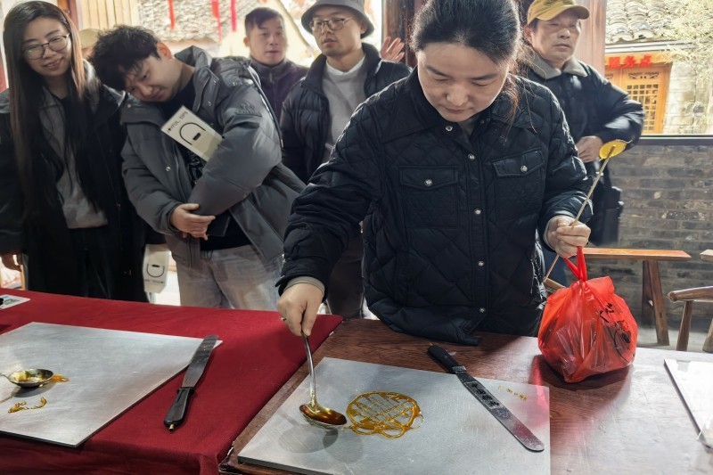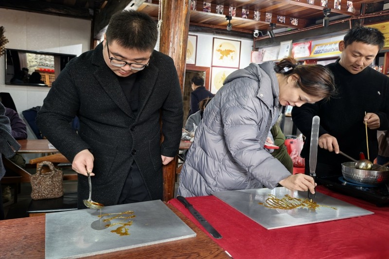 (图为党员们体验非遗糖画)
