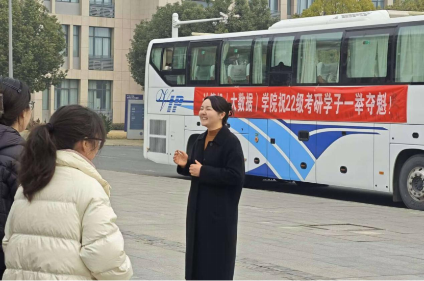 2026年全国硕士研究生招生考试即将拉开帷幕,为进一步向考研学子传递温暖、凝聚力量,12月19日上午,计算机(大数据)学院精心组织了一场简短而温馨的送考活动。学院副院长(主持工作)戴平、党总支书记伊长文、副院长朱洪军、夏林及全体毕业班辅导员悉数到场,为即将奔赴考场的学子们送上诚挚祝福。送考现场,戴平高度肯定了同学们长期以来为实现梦想所付出的艰辛努力和持之以恒的奋斗精神,鼓励大家:“坚持就是胜利!大家已经走到了最后一步,请一定坚定信心,沉着应考,将平日所学所思充分发挥出来。最重要的,是坚持到最后,无论遇到什么情况,都要稳住心态,相信自己。”同时,她再三叮嘱同学们:“考试期间务必注意人身安全、财产安全与交通安全,做好防寒保暖,保持身体健康,以最佳状态迎接每一场考试。”随后,学院领导与辅导员们细致地协助学生们清点证件、检查物品,引导大家有序登上前往各个考点的大巴车。(图为戴平发表讲话)(图为考研学子登车出发)(图为送考现场合照)计算机(大数据)学院始终高度重视学生成长与学业发展,此次温情送考活