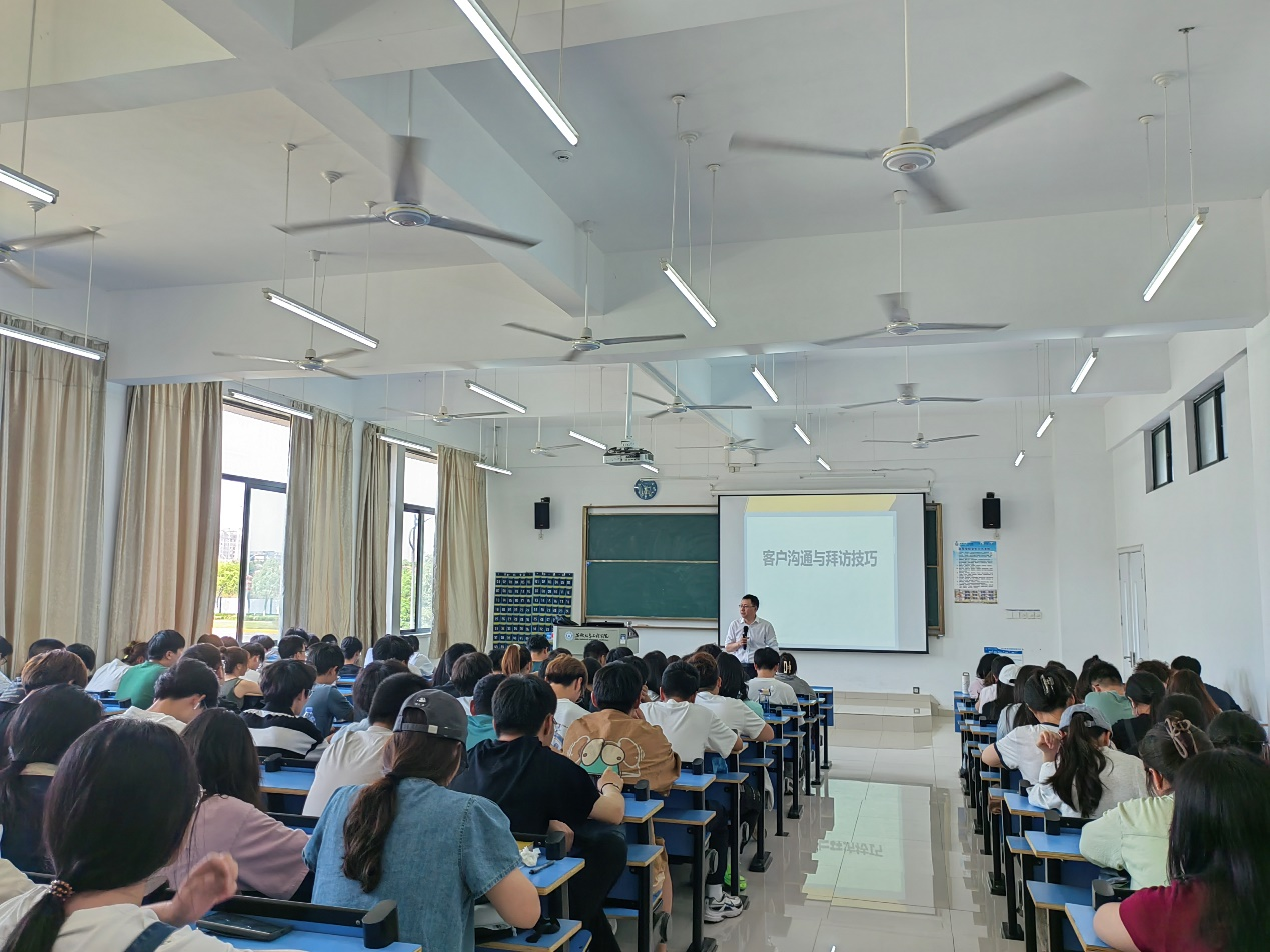 本网讯 为了提升2022、2023级学生对所学专业的认识,激发专业知识学习的热情,培养学生职业规划意识。5月24日下午,管理工程学院邀请安徽师范大学朱立冬副教授、杨康副教授来校开展两场专题讲座,讲座主题分别是“客户沟通与客户拜访技巧”、“供应链管理理论与实践”。(图为朱立冬老师讲座现场)朱立冬副教授围绕“客户沟通与客户拜访技巧”这一主题,为同学们深入剖析在商务活动中如何以营销理念做销售、进行客户的拜访与追踪、有效的沟通技巧、以及如何赢得客户信任等关键问题。重点讲解了以下几个方面的内容:一是客户沟通的重要性与技巧。他阐述了在商务活动中,有效的客户沟通对于建立信任、促进合作、提升业绩的重要作用,并分享一系列实用的沟通技巧,帮助大家更好地与客户沟通交流。二是客户拜访的准备工作与实战策略。他详细介绍在客户拜访前需要做的准备工作,包括了解客户信息、制定拜访计划、准备相关资料等,并分享他在客户拜访中的实战经验和策略,帮助大家更加高效地完成客户拜访任务。三是客户关系的维护与拓展。他讲述了如何通过优质的